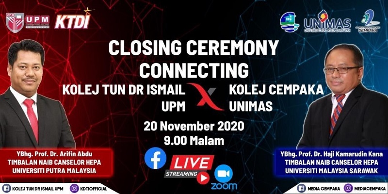 SERDANG, 20 Nov – Pandemik COVID-19 tidak mematahkan semangat pelajar Kolej Tun Dr Ismail (KTDI), Universiti Putra Malaysia (UPM) meneruskan program Connecting KTDI UPM-Kolej Cempaka Universiti Malaysia Sarawak (UNIMAS) yang dilakukan secara atas talian.