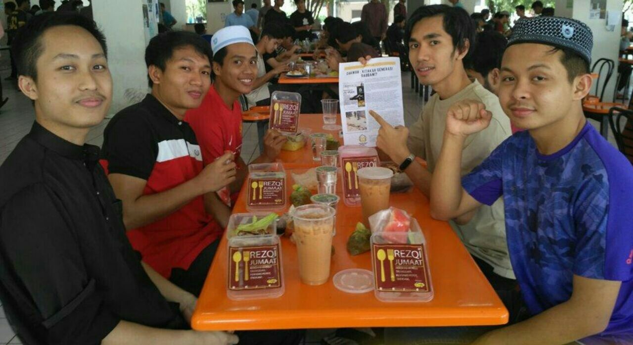 Pasukan pertama mengedarkan 100 pek Nasi Lemak Rezqi Jumaat di Perhentian Bas Fakulti Sains serta Sekolah Perniagaan dan Ekonomi, manakala pasukan kedua mengedarkan 100 pek Nasi Kukus Rezqi Jumaat di Masjid UPM selepas waktu Solat Jumaat.