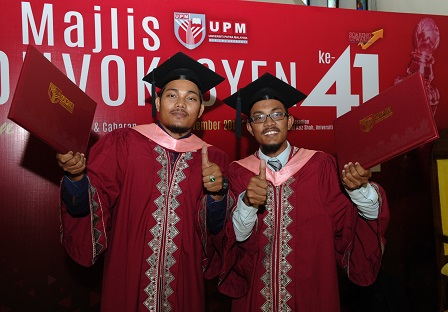SERDANG, 4 Nov – Dua beradik Tuan Zuzahirudin Tuan Zulkipli dan Tuan Zuzaimi berkongsi detik kegembiraan apabila mereka masing-masing menerima Ijazah Bacelor Sastera (Kesusasteraan Melayu) pada Majlis Konvokesyen Universiti Putra Malaysia (UPM) ke-41.