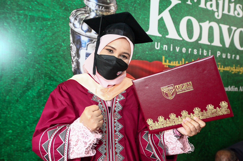 SERDANG, 24 Mac - Hasrat ayah kepada Irane Wiguna binti Idral untuk menyambung pelajaran diperingkat sarjana pada 10 tahun yang lalu menjadi kenyataan apabila Irane Wiguna berjaya bergraduat dalam bidang Master in Human Resource Development pada Majlis Konvokesyen Universiti Putra Malaysia (UPM) kali yang ke-45.