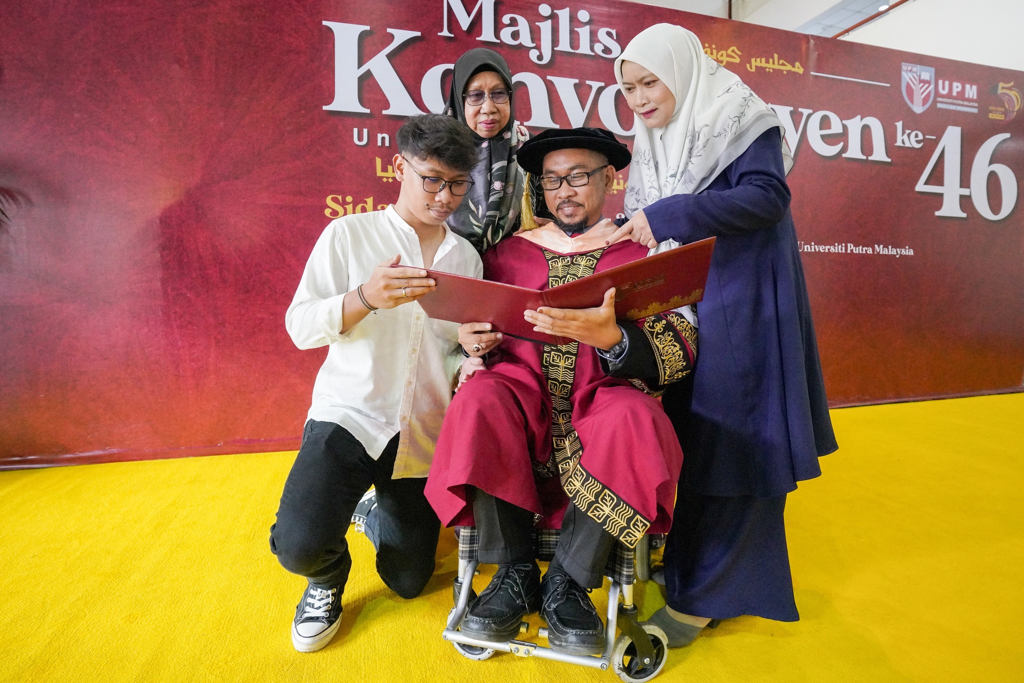 SERDANG, 30 November – Menghidap kanser limfoma tahap empat tidak menghalang graduan PhD Bahasa Melayu, Syahrin Awang Besar pada Majlis Konvokesyen UPM ke-46 Sidang 2 pada hari ini.