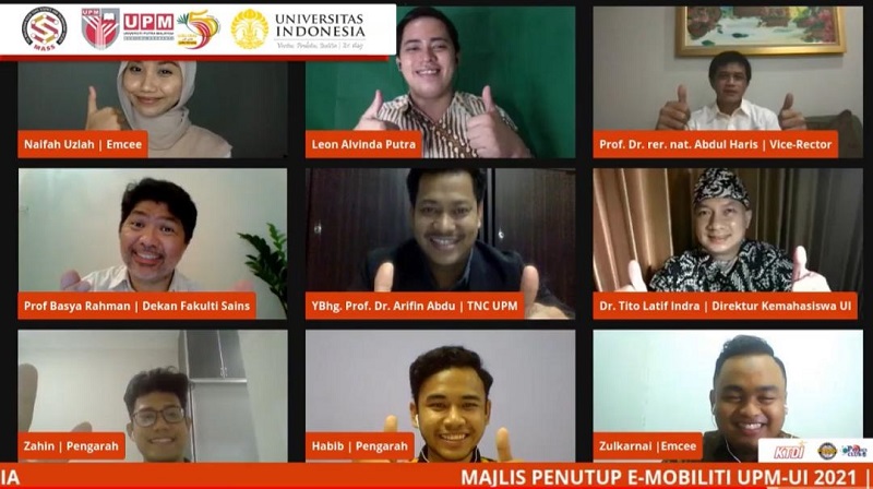 SERDANG, 24 Jan – Pemimpin pelajar Universiti Putra Malaysia (UPM) dan Eksekutif Mahasiswa Universitas Indonesia (UI) menganjurkan progam e-mobiliti antarabangsa secara atas talian yang disertai 24 pemimpin pelajar UPM dan 20 pemimpin pelajar UI.