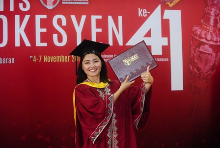 Katanya, beliau bersyukur dan gembira kerana dapat menamatkan pengajian bacelor di dalam tempoh masanya (on time).