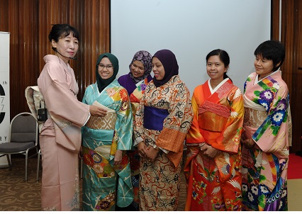 Sementara itu, demonstrasi pemakaian kimono menampilkan pengajar khas dari Jepun, Kazuno Nakajima serta memberi peluang kepada peserta untuk mencuba sendiri pakaian itu serta mengenali pelbagai pakaian tradisional masyarakat Jepun antaranya Kimono dan Hakama. - UPM