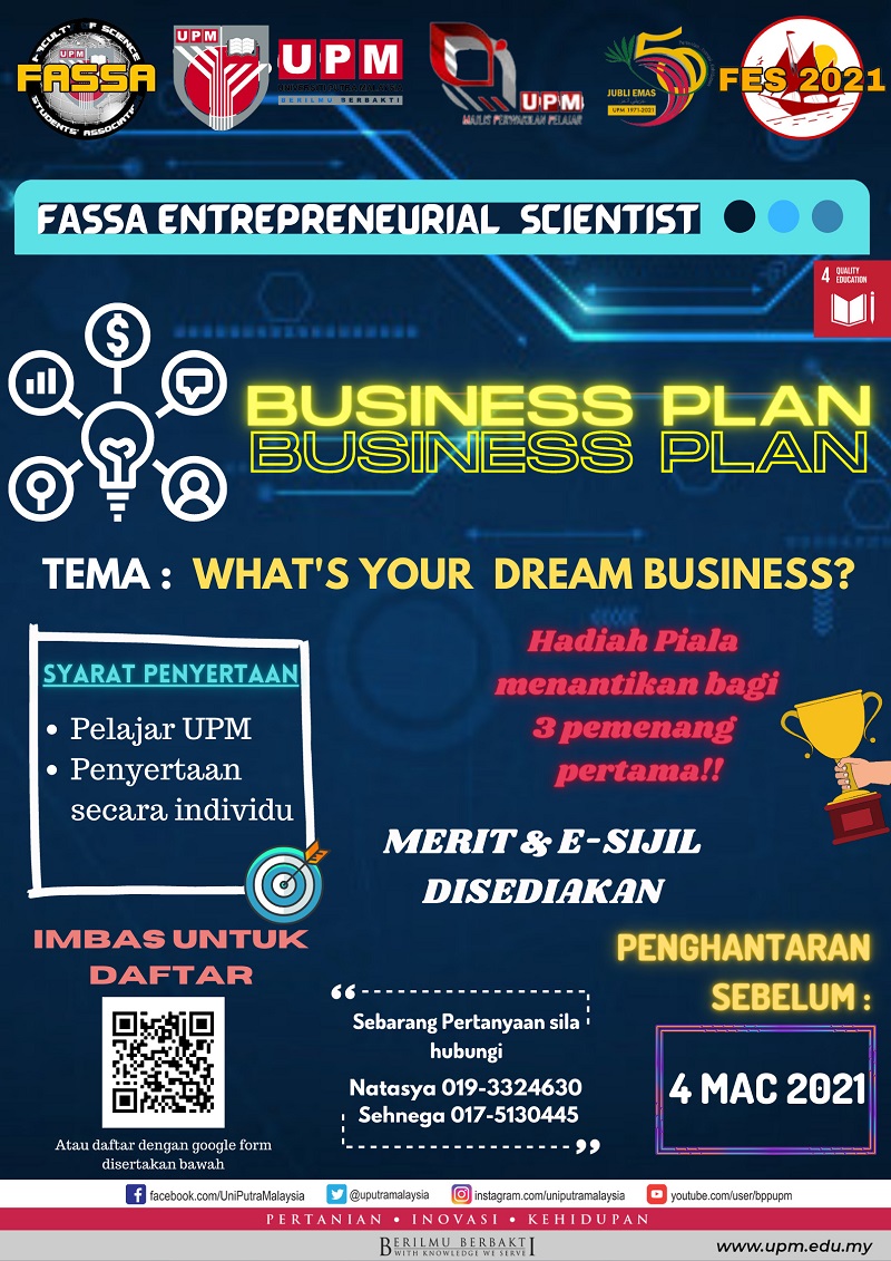 SERDANG, 7 Mac – Dalam mengatasi penularan wabak COVID-19 yang sedang melanda dan usaha untuk terus kekal berhubung dengan pelajar, Majlis Perwakilan Pelajar Fakulti Sains (FS), Universiti Putra Malaysia (UPM) dan Persatuan Mahasiswa Fakulti Sains (FaSSA) dengan kerjasama Fakulti Sains dan Bahagian Hal Ehwal Pelajar dan Alumni, UPM telah menjayakan FaSSA Entrepreneurial Scientist 1.0.