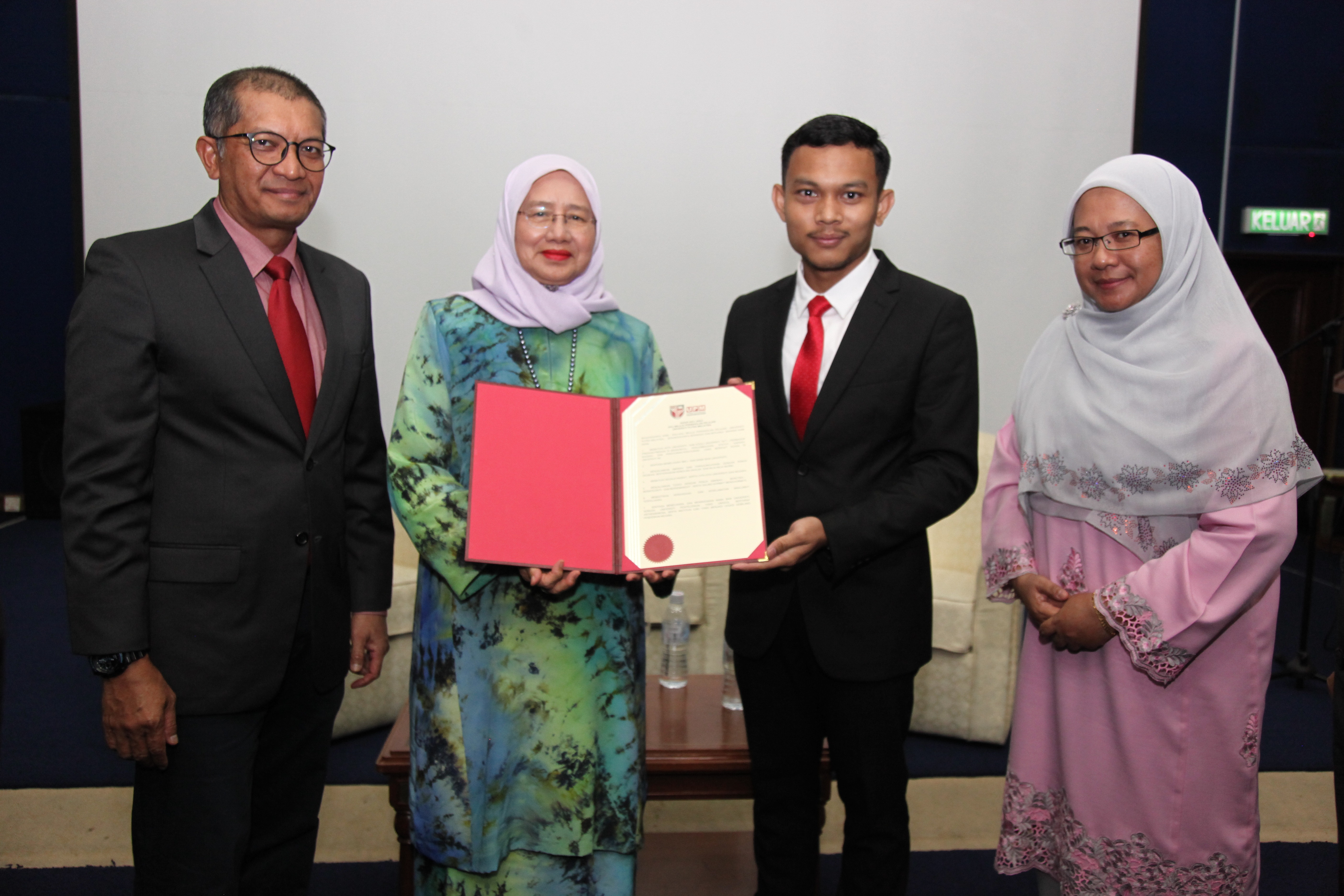Turut hadir Timbalan Naib Canselor (Hal Ehwal Pelajar dan Alumni), UPM, Prof. Dr. Mohd. Roslan Sulaiman dan Ketua Pentadbiran Pejabat Timbalan Naib Canselor (Hal Ehawal Pelajar dan Alumni), UPM, Noorizai Mohamad Noor.