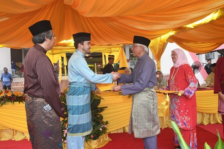 SERDANG, 1 June – His Royal Chancellor, Sultan Sharafuddin Idris Shah presented Hari Raya contributions to 50 UPM students that included orphans, the underprivileged and converts and 6 UPM students who were the recipients of the Knowledge Wakaf Fund.