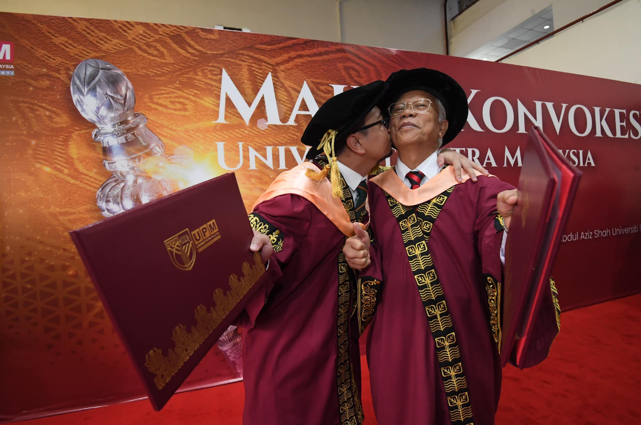 “Saya sangat bangga hari ini dapat bergraduat bersama anak saya yang juga memperoleh PhD dan tidak sangka pada sesi yang sama. Tahun hadapan jika tiada aral melintang anak sulung saya pula akan meraih PhD,” katanya.