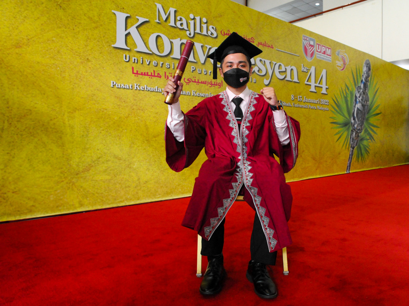 SERDANG, Jan 11 – A disability is not a barrier for Mohammad Izzamuddin Azuddin, 22, to graduate with a Diploma in Agriculture at the 44th UPM Convocation Ceremony 2022 here.