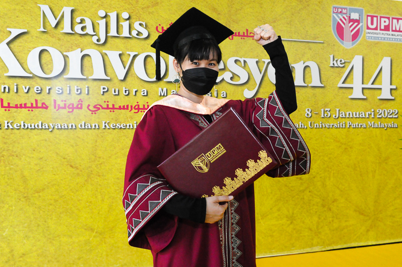 She received her Bachelor’s degree in 2016 and furthered her studies in Masters in 2017, and intended to further her studies at the Doctor of Philosophy (PhD) level to become a lecturer. - UPM