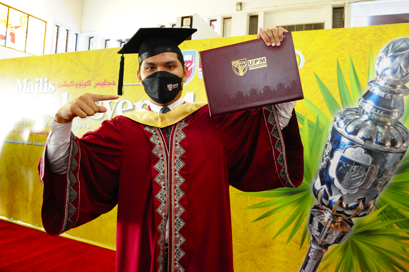 SERDANG, Jan 9 – Although he was only able to master the 3M skills - reading, writing, and counting in Standard 4, that beginning did not stop Amirul Ashraf Mohamad Azmi, 26, from attaining a Bachelor of Accounting from the School of Business and Economics (SPE), Universiti Putra Malaysia (UPM), at the 44th UPM Convocation Ceremony, today.