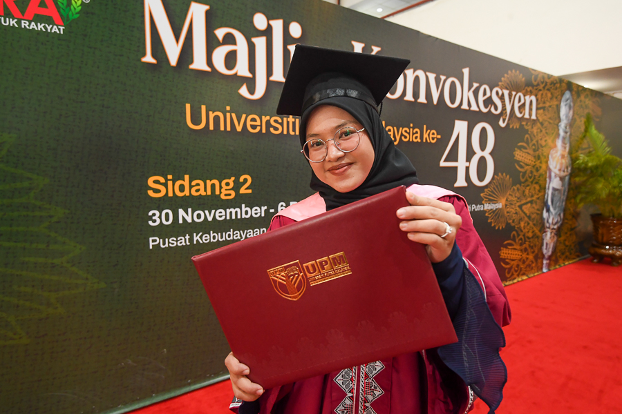Graduan Bacelor Sastera Bahasa dan Linguistik Melayu dengan Kepujian, Fakulti Bahasa Moden dan Komunikasi, Universiti Putra Malaysia (UPM) itu diraikan dalam Majlis Konvokesyen UPM yang ke-48 sidang 2 hari ini.