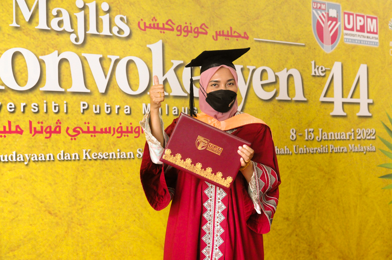 The wife and mother of two had received a Master of Science in Agronomy at the 44th Universiti Putra Malaysia (UPM) Convocation Ceremony here, with a CGPA of 4.00.