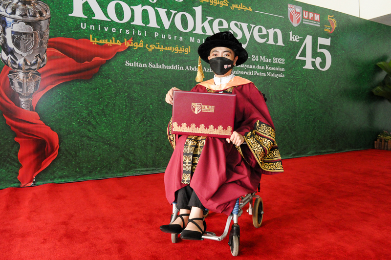Serdang, 23 Mac - Seorang graduan Doktor Falsafah (PhD) Bioteknologi Alam Sekitar, Tan Sock Yin, 32 meluahkan rasa bangga dengan ketersediaan Unit Perkhidmatan dan Sokongan OKU Universiti Putra Malaysia (UPM) sepanjang beliau melanjutkan pengajian di UPM.