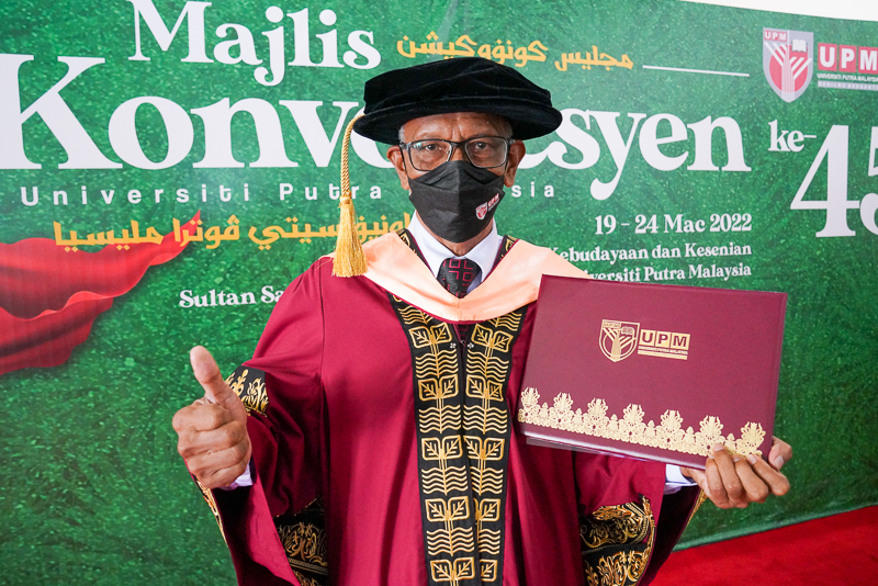 SERDANG, March 23 – Reaching a golden age is not a barrier for Dr. Shaikh Mansoor Shaikh Ahmad, 68, to graduate with a Doctor of Philosophy (PhD) in Human Resource Development at the 45th Universiti Putra Malaysia (UPM) Convocation Ceremony today.