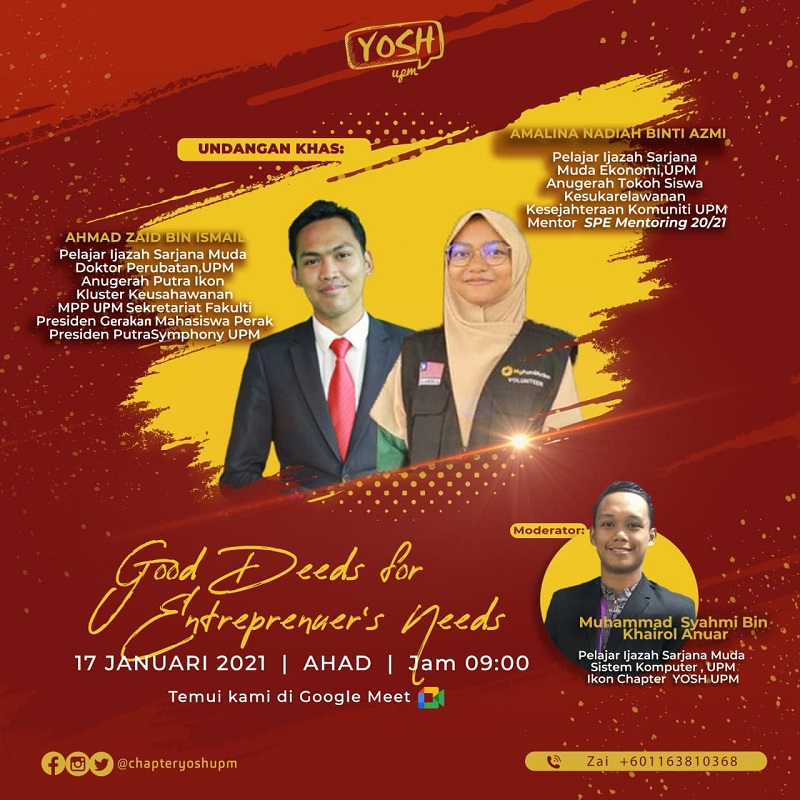 SERDANG, Jan 17 – A total of 94 undergraduate students have participated in the Good Deeds for Entrepreneur’s Need Programme, which focuses on sharing tips and skills to overcome challenges after graduation.
