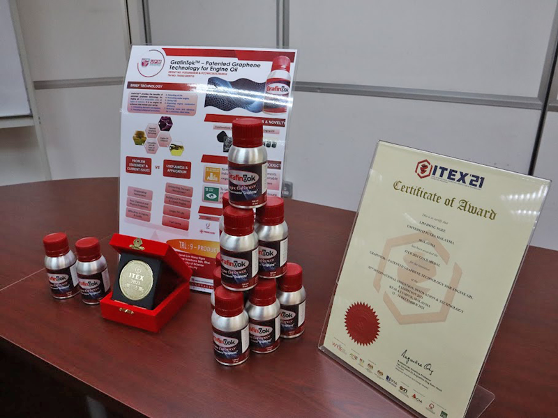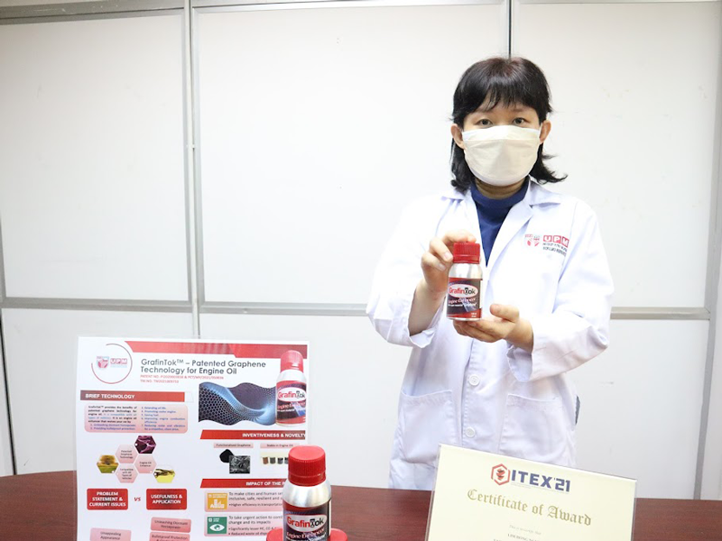 Prof. Dr. Janet Lim, from the Department of Chemistry, Faculty of Science, UPM, said GrafinTok™ focuses on being a ‘green invention’ that saves consumers’ money by reducing the need to change the engine oil regularly as it reduces dirty waste oil.