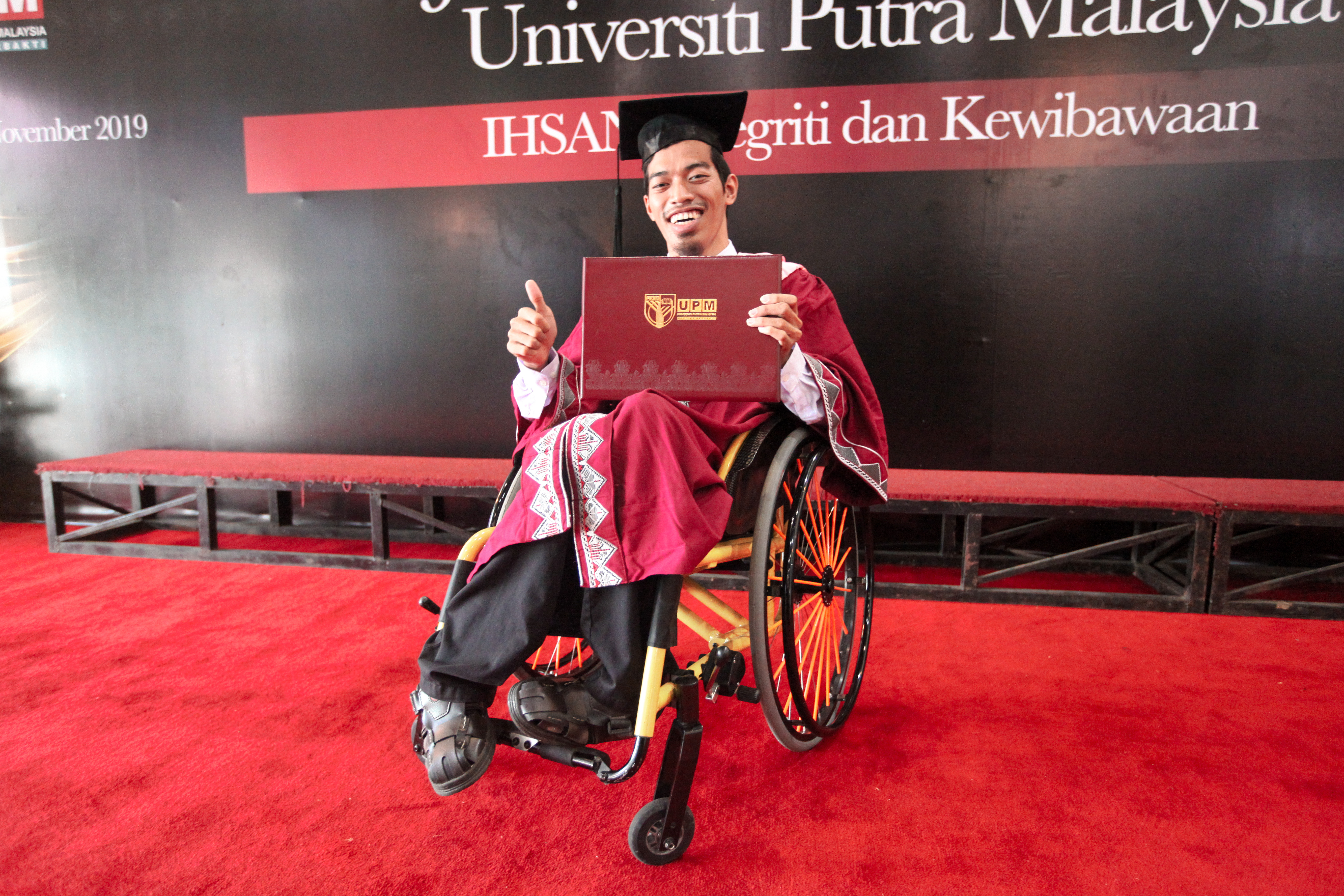 Hussein was grateful for the encouragements he received from many people and organisations that have helped him cope with challenges as a student with disability throughout his four years in UPM.