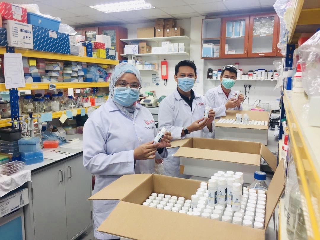 The first phase of production had produced 560 50ml bottles of hand sanitisers which were delivered to the University’s COVID19 Operations Room (OSHA) for distribution. The second phase will produce more than 2,000 50ml bottles of the product, which are expected to be ready later this week. This phase also includes the production of refillable 10L bottles to be distributed to the frontliners for hand sanitiser refills, while in the third phase, the group will provide surface sanitiser for university use.