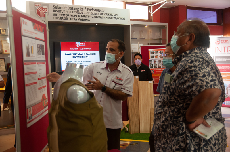 SERDANG – The Institute of Tropical Forestry and Forest Products (INTROP), UPM, has recently held the INTROP Innovation Open Day 2021 in conjunction with the INTROP site visit event by the Chairman of the University Board of Directors, YAM Tengku Syarif Laksamana Perlis Dato' Seri DiRaja Syed Razlan Syed Putra Jamalullail, and the university’s top management.
