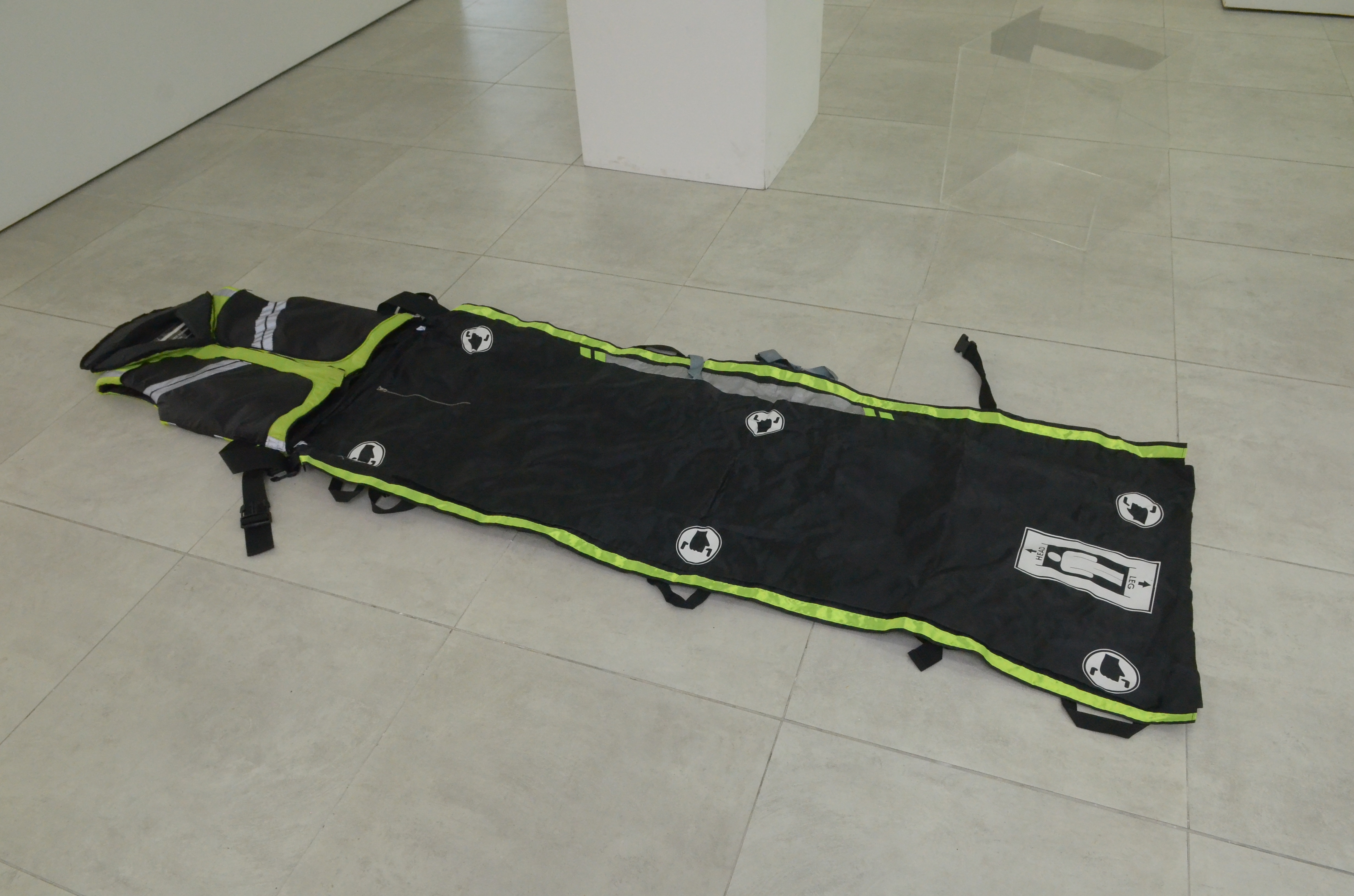 Each MRV jacket is coated with a layer of light reflector, belts and fasteners while the stretcher is folded onto the back of the jacket and can be unfolded to turn it into a stretcher.