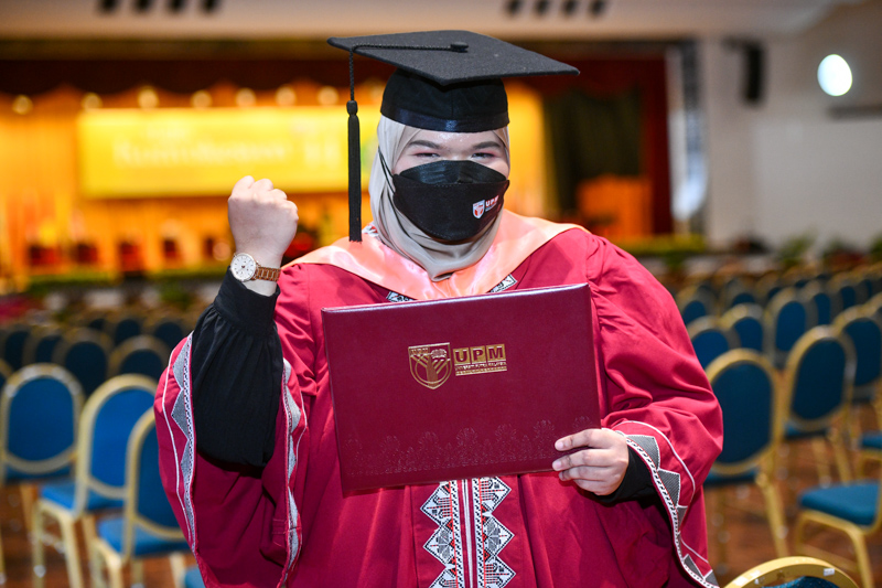 "I feel delighted to stand on the stage of the Sultan Salahuddin Abdul Aziz Shah Arts and Cultural Centre (PKKSSAAS), UPM, to receive a degree," she said.