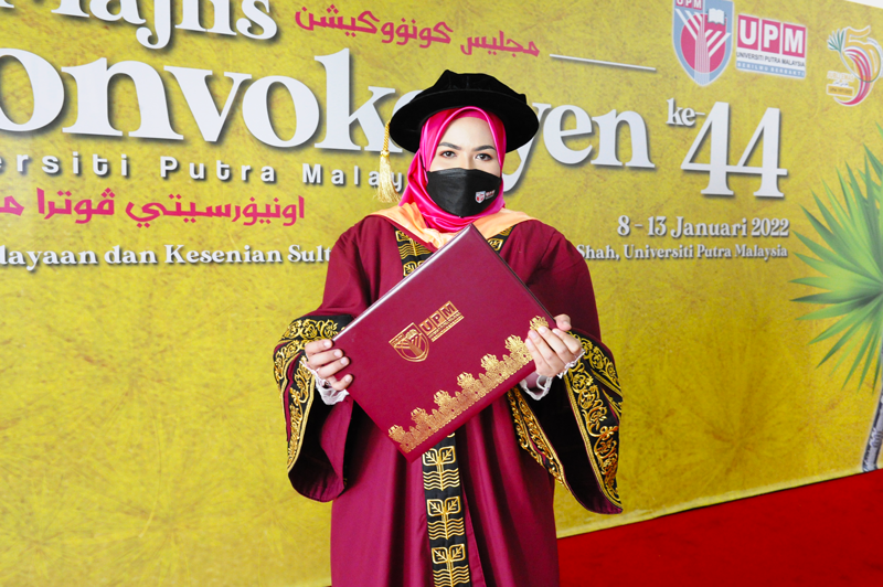 These were the words of encouragement from Dr. Khairun Nisa’ Khiruddin, 32, who received a Doctor of Philosophy (PhD) in Human Resource Development, at the 44th Universiti Putra Malaysia (UPM) Convocation Ceremony here, today.