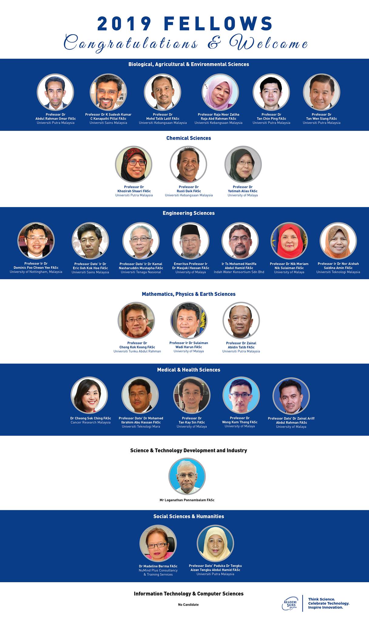 ASM's fellowships consist of calibre scientists, engineers, technologists and social scientists who have made distinguished contributions in their respective fields.