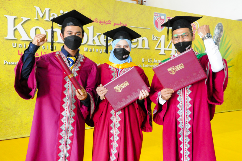 SERDANG, Jan 12 – Three members from a family successfully graduated and became alumni of Universiti Putra Malaysia (UPM) at the 44th UPM Convocation Ceremony today.