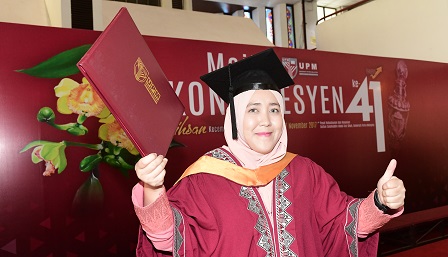 Iyla, 27, received a Bachelor of Science (Human Development) at Universiti Putra Malaysia’s (UPM) 41st Convocation ceremony here.