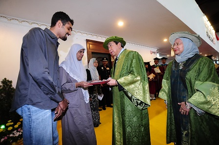 The Doctor of Philosophy in Education and Community Development degree was accepted by his eldest son, Muhamad Ridwan who was accompanied by his mother, Asha Marya and five of his siblings.