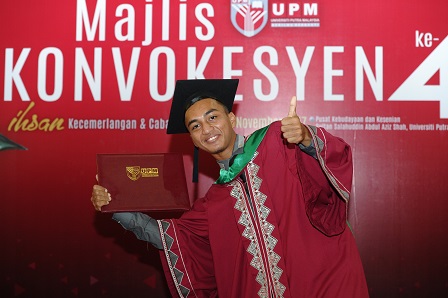 SERDANG , 7 Nov – With a determination of not wanting to burden his parents or getting into debt for taking a loan from PTPTN, Muhammad Najib Abu Bakar became self-employed throughout his studies to pay for the tuition fees until he successfully graduated with a Bachelor of Agricultural Science.
