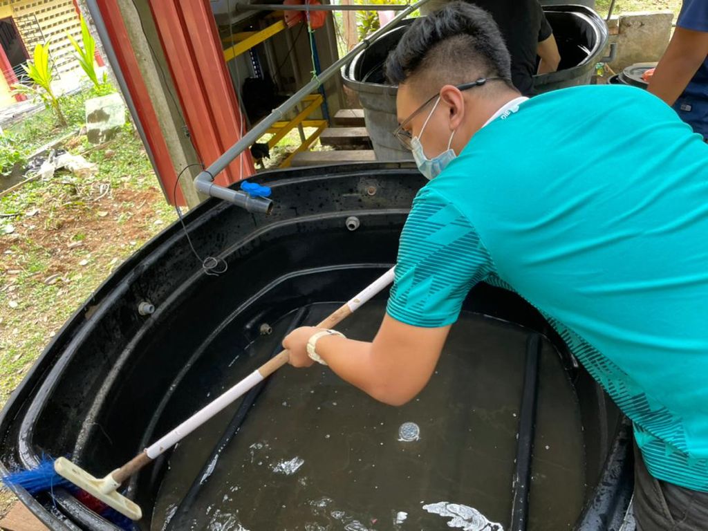 Students involved went through in-house training, which is a beneficial learning process. They were exposed to fish breeding knowledge from the very early stages, including pond preparation, water quality care, fish seed selection, feeding process, water change, fish size classification, accounting and harvesting as well as the marketing process.