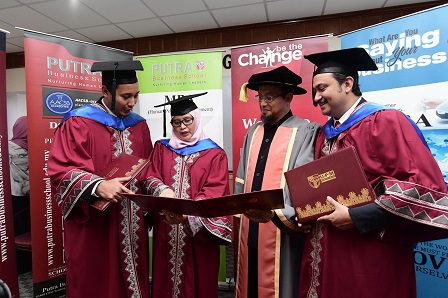 Nor Azhar Manap was conferred with a Master’s Degree in Business Administration (International Business) while Mafidah Mansor received a Master’s Degree in Management (Information Technology) at the 19th convocation ceremony of Universiti Putra Malaysia (UPM)-Private Higher Education Institutions (UPM-PHEIs) Collaborative Programmes. Both of them also received the Human Governance Award.