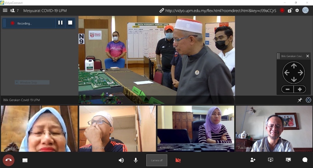 The Emergency Response Team Committee Meeting chaired by UPM Vice-Chancellor as the Incident Commander is held daily through video conference at the UPM COVID-19 Operations Room. This meeting coordinates daily information, makes decisions on issues requiring immediate attention, and plans the university initiatives in ensuring the implementation and management of the COVID-19 crisis is done effectively, quickly and efficiently.