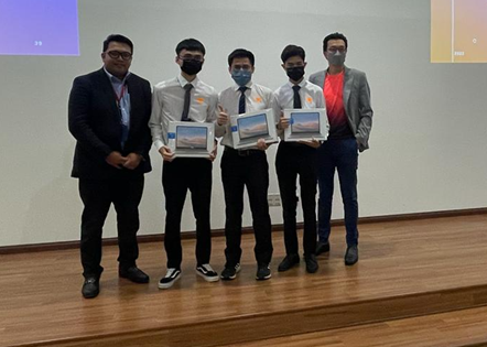 The UPM_AMT team made of third-semester students of the Bachelor of Electrical and Electronics Engineering with Honours, Wong Chee Kin, Lee Kwen Wai and Chai Rong Qian, and they were announced as the winner of the Smart Retail Supermarket (i-Trolley) category taking home a prize of three laptop computers, Microsoft Surface Laptop Go.