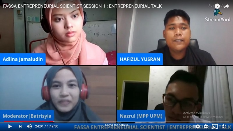 SERDANG, March 7 – In an effort to tackle the COVID-19 pandemic and to stay in touch with students, the Faculty of Science Student Representative Council, Universiti Putra Malaysia (UPM) and the Faculty of Science Students’ Association (FaSSA) in collaboration with the Faculty of Science and Student Affairs and Alumni Division, UPM have successfully organised the FaSSA Entrepreneurial Scientist 1.0.