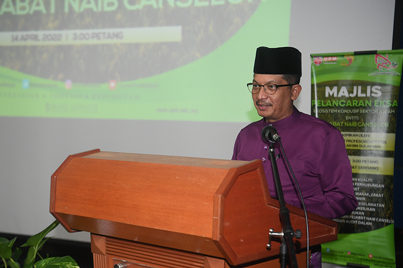 SERDANG, April 14 - The Office of the Vice-Chancellor of Universiti Putra Malaysia (UPM) has organised the Public Sector Conducive Ecosystem (EKSA) Launching Ceremony, which was launched by UPM Vice-Chancellor, YH. Professor Dato’ Dr. Mohd. Roslan Sulaiman, at the Dewan Taklimat Serdang here.